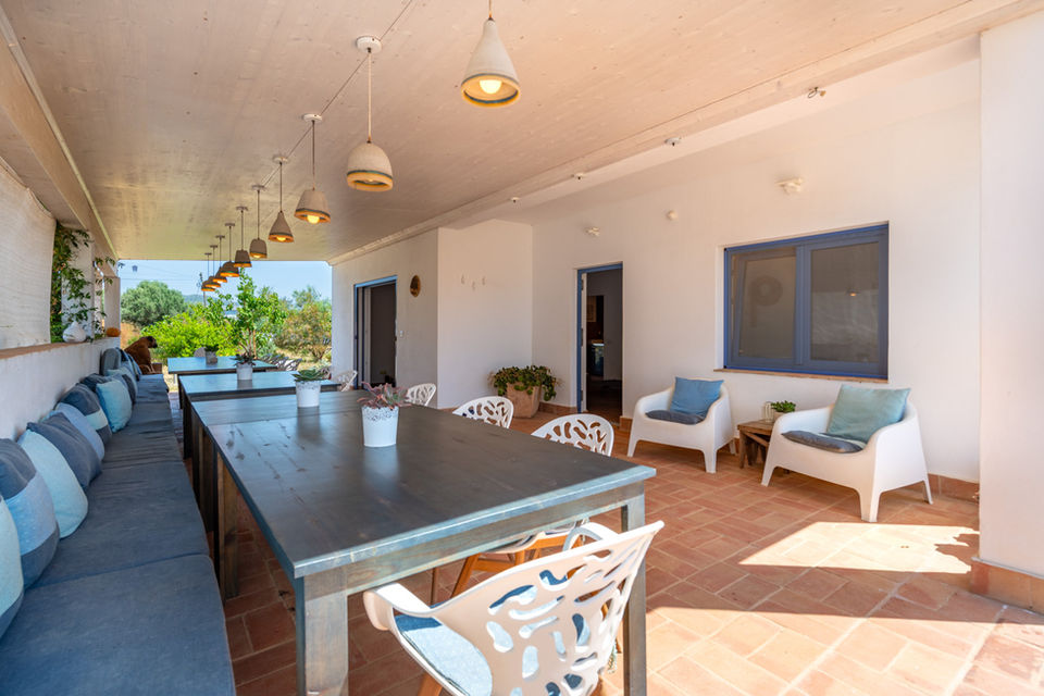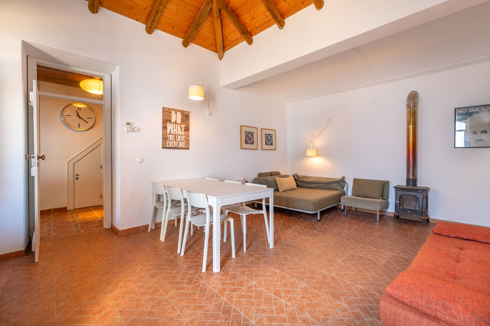 Our farmhouse can host a larger family or a group of friends (up to eight) in three rooms listed above: Romãzeira, Oliveira, and Pinheiro (for max. six guests). If needed, one or two more people can sleep on a sofa bed (110 x 200 cm) in the living room. Facilities: fully equipped kitchen, living and eating room, bathroom, separate toilet, laundry tower, and cosy covered patio with eating table in front of the farmhouse. (AL license: 92466)